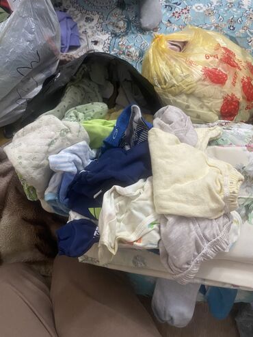 - Одежда смешанная: детские и взрослые позиции по фото (футболки, штанишки, боди/ползунки, свитшоты, носочки и пр.), в том числе вещи для малышей светлых и пастельных оттенков.