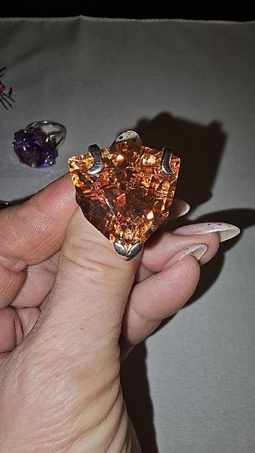 - Кольцо с оранжевым камнем (крупная многоугольная огранка, открытая посадка на трёх лапках).
