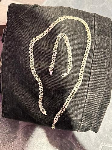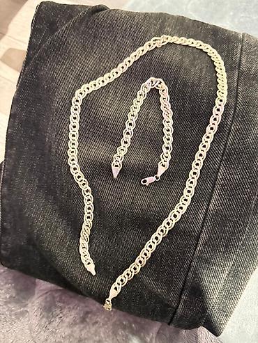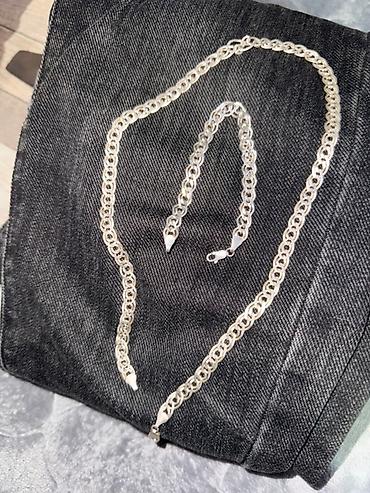 Набор украшений из серебра : цепь и браслет с одинаковым плетением.