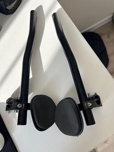 - Лежаки с подлокотниками и мягкими подушечками. Крепление хомутами под руль, указан диаметр 31.8 мм на проставках. Изогнутые выносы для удобной посадки в «аэро». Подлокотники регулируемые, подушки на липучке.