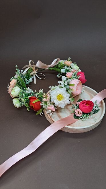 Другой цветНабор "Венок и браслет" в ярких цветах, имитирующих живые цветы и листья, создает праздничный образ. Венок и браслет украшены разноцветными цветами: розовыми, желтыми и белыми, а также зелеными листьями и золотистыми бусинами. Длинные атласные ленты позволяют регулировать размер и обеспечивают надежную фиксацию. Этот комплект идеально подходит для создания нежного и романтичного образа, придавая изысканность и уникальность.Соберем веночек под ваш образ, в любом другом цвете. Для заказа пишите нам на Ватсапп.