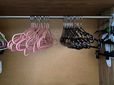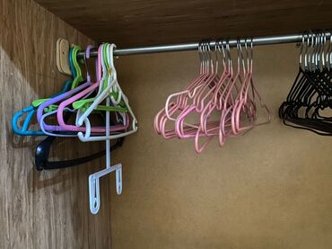 - Разнообразие типов: классические плечики, тонкие металлические с крючками, пластиковые разноцветные, есть модели с перекладиной и с клипсами для брюк/юбок, а также вертикальный органайзер-подвес для экономии места.