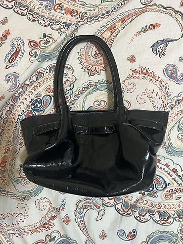 - Компактная глянцевая handbag: жесткие короткие ручки, лаковая фактура, одно основное отделение.