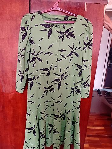 3) Зеленое платье с черным растительным принтом, цена 350 сом