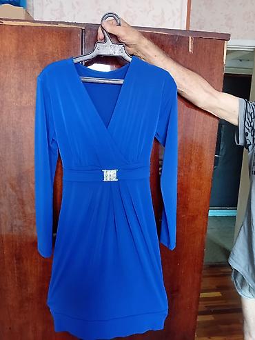 1) Электрик-синее платье с длинными рукавами, цена 500 сом
