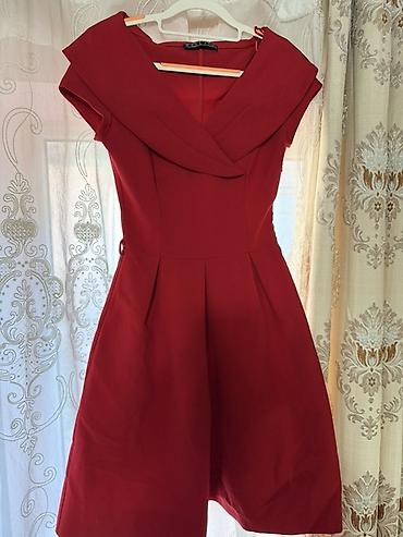 4) Коктейльное платье до колена в бордовом цвете: плотная ткань, приталенный верх, мягкие складки на юбке, широкий отложной воротник-ободок, короткие рукава, скрытая задняя молния. Одевали пару раз, цена 500с