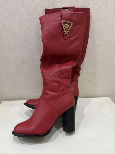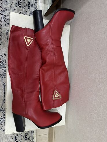 Женские сапоги, 2 пары. 1) Красные сапоги до середины голени: -