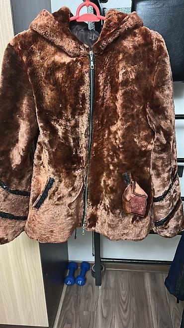 4) Укороченная куртка из мутона на молнии с капюшоном, два прорезных кармана, декоративные кожаные/тесьмовые вставки по рукавам и небольшая подвеска-брелок.