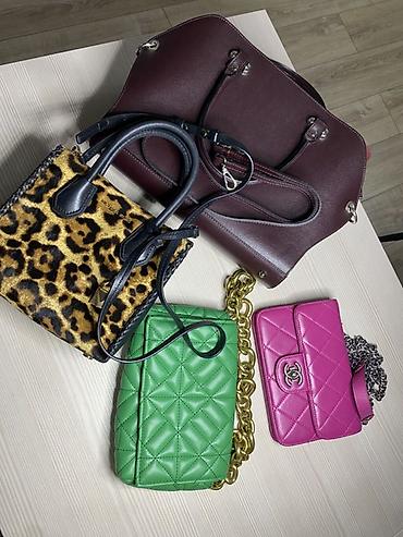 Набор женских сумок (4 шт.) 1) Бордовая кожаная сумка (Genuine
