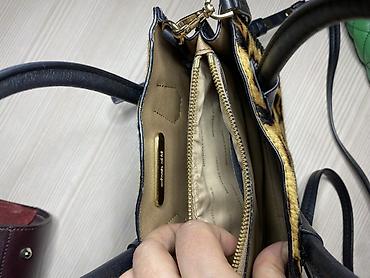 - Фактурный леопардовый материал спереди, кожаные черные ручки и отделка