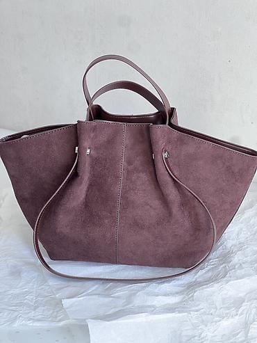 1) Вместительная сумка-тоут из мягкой замши цвета пыльной сливы