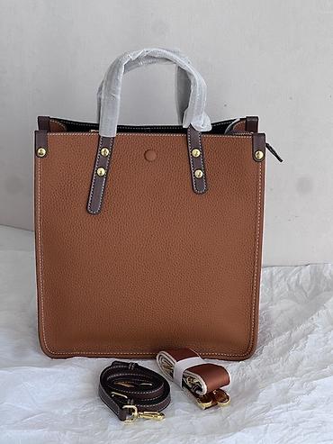 2) Прямоугольная фактурная сумка-тоут карамельного цвета