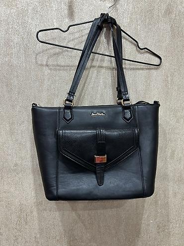 Женские сумки, комплект из двух моделей. 1) Черная структурированная сумка-тоут из фактурной эко-/кожи с крупным зерном: - Формат: жесткий прямоугольный корпус, держит форму - Две цельные ручки дл...