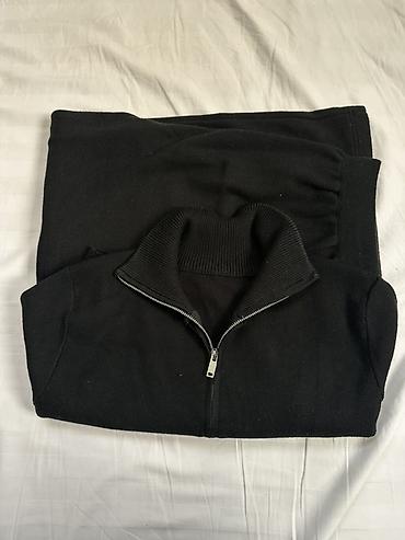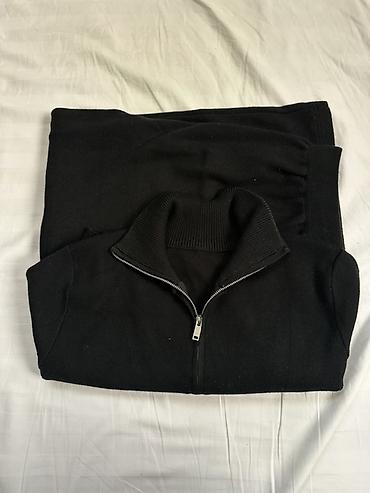- Черный свитшот на молнии до середины (half-zip) с высоким воротником-стойкой в рубчик. Плотный трикотаж, металлическая молния, длинные рукава, эластичные манжеты и нижняя кромка.
