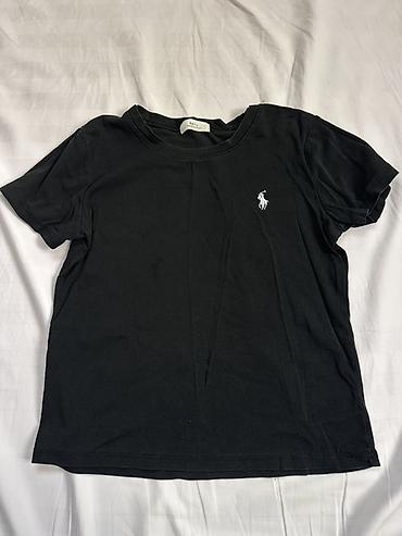 - Черная футболка Ralph Lauren с коротким рукавом и вышитым белым логотипом на груди; круглая горловина, хлопковый трикотаж.