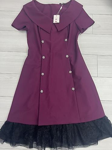 - Фиолетовое платье — наряд для событий, благодаря блестящим пуговицам и кружеву.