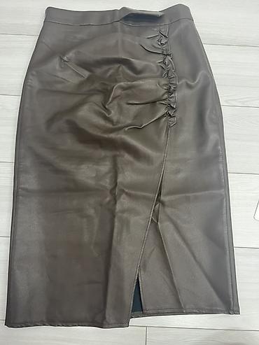 4) Юбка миди из эко‑кожи (темно‑коричневая):