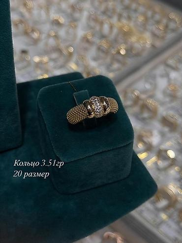 - Кольцо – 3,51 г, размер 20. Широкая фактурная шинка с центральным блоком: гладкие элементы по краям и вставка с россыпью светлых камней по центру.