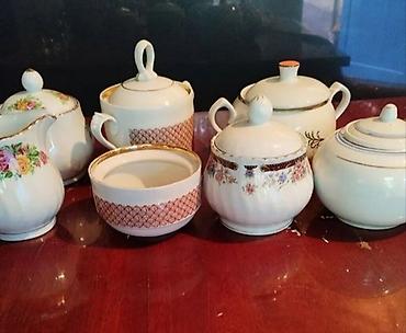 Фарфоровый чайный сервиз с ручной росписью Состав набора: - чайник с крышкой - сахарница с крышкой - молочник - 6 чашек - 6 блюдец - 6 пирожковых тарелок Особенности: - тонкий белый фарфор - рису...