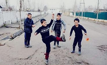 - Традиционный уличный снаряд для игры ногами: подбивание и передачa без рук.