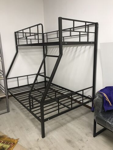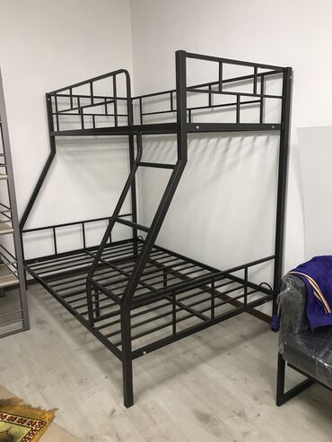 Просторное спальное место внизу (120х190 см) и стандартное (90х190 см) сверху. Доступны варианты с ящиками и навесной полкой. Подберем матрасы от 2500 сом При заказе кровати с матрасами доставка по Бишкек БЕСПЛАТНО! Звоните!
