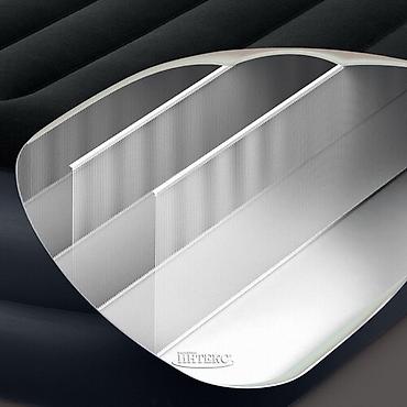 Надувная кровать Intex оснащена технологией Fiber-Tech, которая использует тысячи прочных полиэфирных волокон-нитей вместо обычных ПВХ-перегородок внутри конструкции матраса. Эти волокна соединяют верхнюю и нижнюю части кровати, обеспечивая ровную высоту и предотвращая деформацию при нагрузке с одной стороны. Благодаря этой технологии матрас не проваливается и сохраняет свою форму и равновесие даже при давлении.