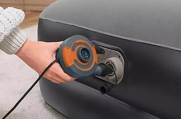 Кровать поставляется с встроенным электронасосом, который обеспечивает быстрое надувание и сдувание кровати всего за несколько минут. Вы можете регулировать упругость кровати с помощью насоса. Для подключения насоса достаточно использовать стандартную электрическую розетку. В случае отсутствия доступа к электричеству, вы можете накачать кровать с помощью обычного механического насоса или насоса от автомобильного прикуривателя. Кровать оснащена специальным клапаном для подключения внешнего насоса.