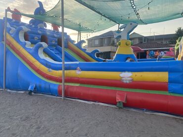 Детская уличная площадка с игровым комплексом - Тематический комплекс из прочного пластика и металла - Несколько горок: центральная широкая волнистая с фигурным «зверем», боковая винтовая и прямая...