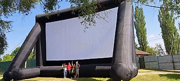 Этот портативный дисплей для проектора, разворачивается за 20 минут до большого экрана. Размер экрана 12м на 6м. После окончания сессии надувной "телевизор" складывается и помещается в багажник автомобиля, что делает его сверхмобильным. Надувной экран это огромный дисплей на опорах, заметно повышающий эффективность выездных уличных мероприятий и презентаций в больших залах. для домашнего кинотеатра, кемпинга, фильмов, свадьбы, улицы.