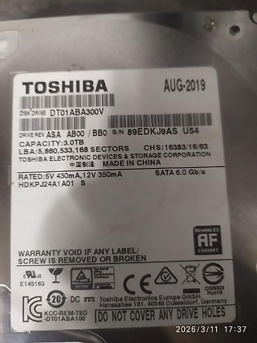 6tb toshiba бу и новые с гарантbей. Все диски в отличном состоянии как новые. В наличии: 1тб 6000 сом 1тб 7000 сом новый 2тб 9800 сом 2тб 11000 сом новый 3тб 12000 сом 4тб 13500 сом 4тб 15000 ...