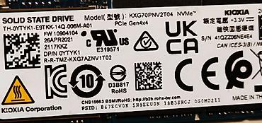 Модель: Kioxia KXG70PNV2T04 (PCIe Gen4x4, форм‑фактор M.2 2280)