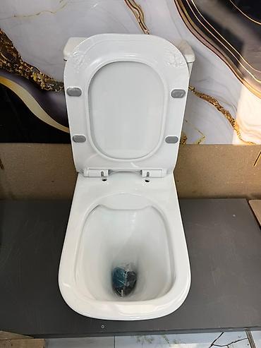 - Цельнокерамическая чаша и бачок из сантехнического фарфора, глянцевая глазурь для легкой уборки.