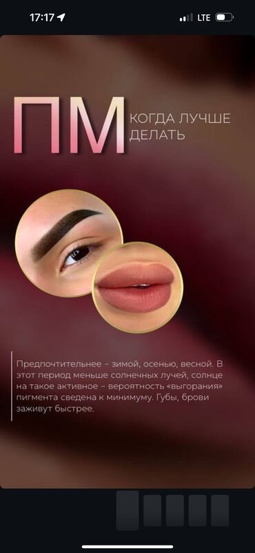 ОБУЧЕНИЕ ! Перманентный макияж бровей ,губ и межреснички Обучение индивидуально,35000сом ,10дней,моделей и материалы на время обучение предоставляем! Выдаём международный сертификат! Адрес Жаманба...