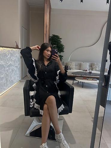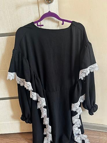 Женская одежда: платья и блузка с акцентом на романтичные детали 1) Черное мини‑платье с контрастным белым воротником - Силуэт: приталенный верх, пышная юбка‑солнце. - Длина: мини. - Рукава: длинн...