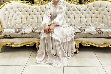 - Дизайн: многоярусная юбка с оборками; пышные рукава с мягкой сборкой