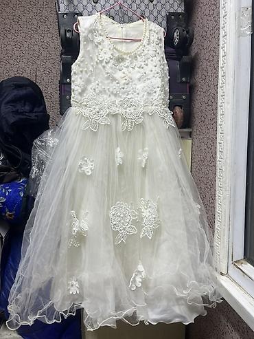 Нарядное детское платье в кремово-молочном оттенке. Подойдёт от 7 до 11 лет . б/ у цена 1500 сом вместе с туникой - Размер: на вешалке указан 56 (ориентируйтесь по меркам/фото). - Верх: плотный...
