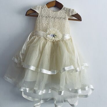Нарядное детское платье айвори/молочного оттенка. Размер на 1-1,5 годика.Состояние как новое.Очень красиво смотрится. - Силуэт: пышная многослойная тюлевая юбка, верх из гладкой ткани. - Декор: дв...