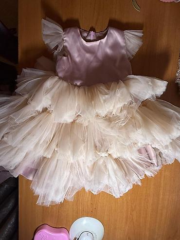 Нарядное детское платье в кремово-молочном оттенке. Подойдёт от 7 до 11 лет . б/ у цена 1500 сом вместе с туникой - Размер: на вешалке указан 56 (ориентируйтесь по меркам/фото). - Верх: плотный...