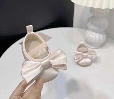 - Пинетки‑туфельки в тон с объемными атласными бантами и эластичной фиксирующей перемычкой.