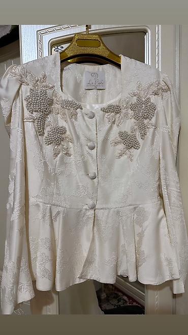 - Светлый молочный оттенок, сочетается с жакетом в единый образ