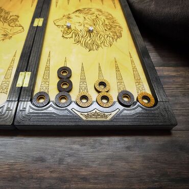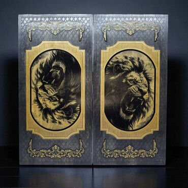 Набор деревянных нард с уникальной резьбой, изображающей львов, орлов