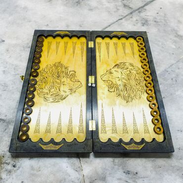 Набор деревянных нард с уникальной резьбой, изображающей львов, орлов и тигров. Эта игра сочетает в себе классический геймплей с изысканным художественным исполнением. Складная конструкция делает н...