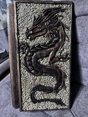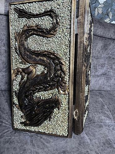 - Материал: дерево, резьба по дереву с заливкой/лаком; рельефный дракон на обложке с фоном из декоративной каменной крошки.