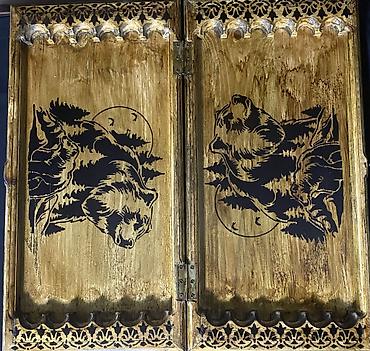Нарды ШАХМАТЫ на заказ ручной работы из дерева, украшенные резьбой. На заказ Модели имеют различные декоративные узоры и тематические изображения, включая шахматные доски на внешней стороне. Из...