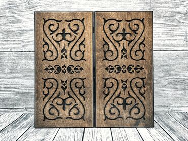 Нарды из дерева с резьбой - Материал: натуральное дерево, ручная резьба по всей поверхности. - Внешняя сторона: глубокий орнамент с геометрическими и растительными мотивами. - Внутренняя сторона: ...