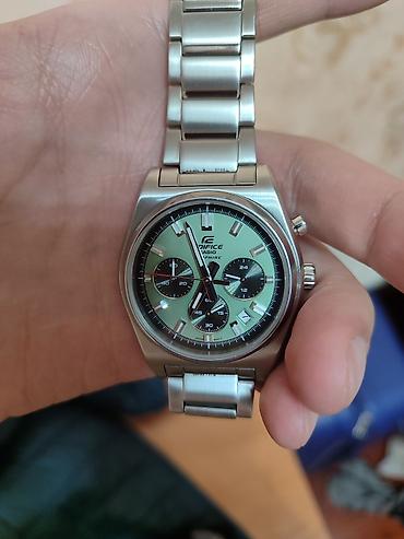 Стильные повседневные часы Edifice с акцентным зеленым циферблатом и функциональным хронографом. Подойдут к деловому и casual-образу.