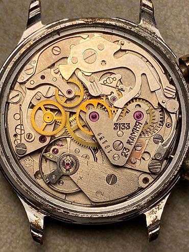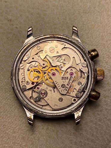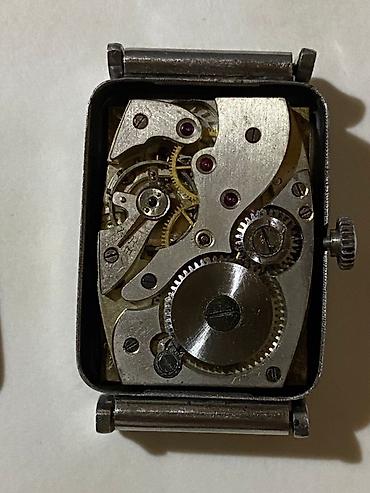 - Механизм: механический с ручным заводом; виден через открытую заднюю крышку (мосты на винтах, рубиновые камни)