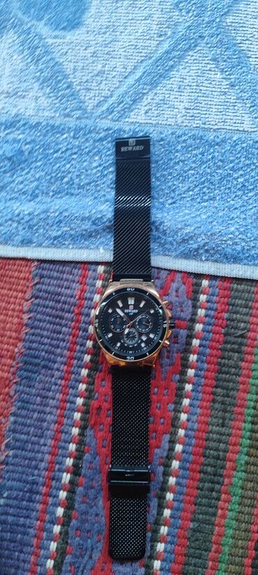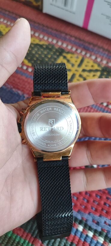 Элегантные наручные часы от REWARD, модель D82003M, с кварцевым механизмом. Корпус часов выполнен в золотистом цвете, а циферблат черного цвета дополнен контрастными стрелками и метками для легкого считывания времени. Черный сетчатый ремешок из нержавеющей стали обеспечивает комфортное ношение. Часы обладают водонепроницаемостью 3ATM, что позволяет выдерживать брызги воды и небольшой дождь, делая их универсальным аксессуаром для повседневного использования. Уникальный дизайн часов подходит как мужчинам, так и женщинам. почти новый, надевал только 2 раза.