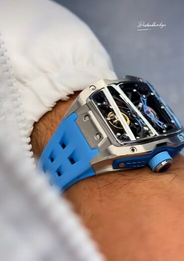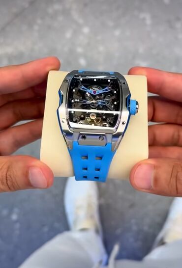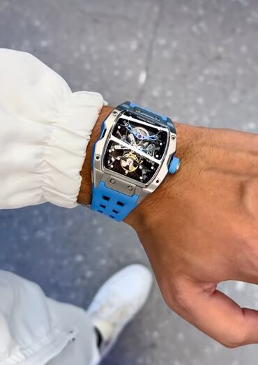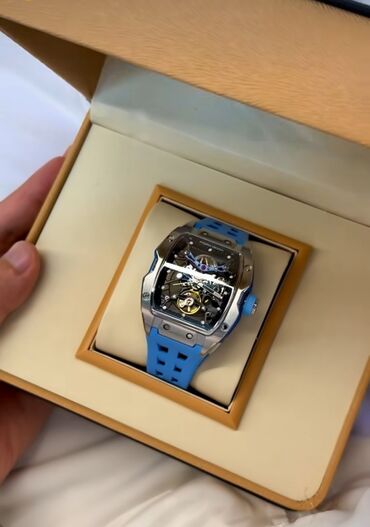 Скелетонизированные наручные часы с голубым ремешком