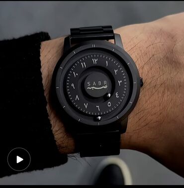 - Часы SABR с арабскими цифрами: полностью черный корпус и браслет, многоуровневый циферблат с центральным диском и метками по окружности, контрастные точки‑индикаторы для считывания времени.